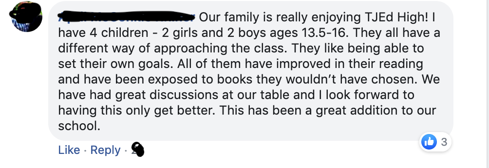 Check out these comments from parents and students of TJEd High!